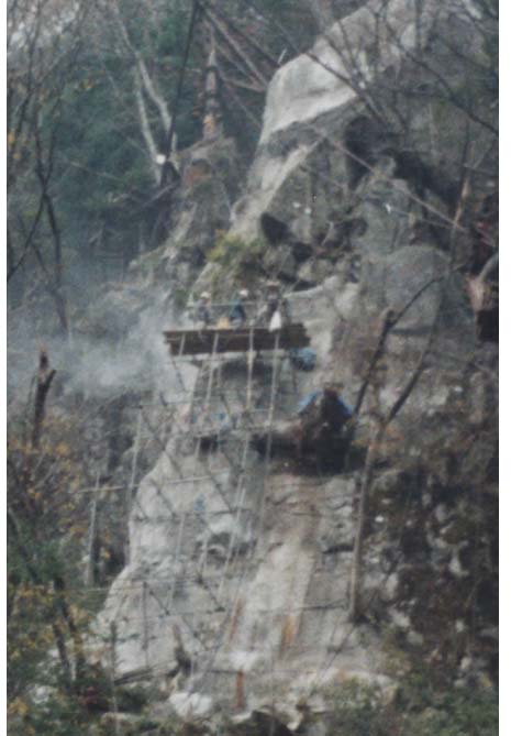 RCロッククライミング工法 削孔中
