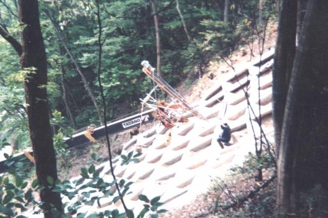〜 無水掘無足場工法 遠隔操作にて削孔中 〜